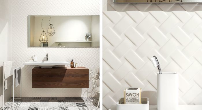 Le blanc améliore la tridimensionnalité des revêtements céramiques en améliorant les effets optiques et de clair-obscur. L'ombre beige, chaude et légère, évoque des sensations de détente et de calme. Le Gris, neutre par excellence, est proposé comme toile de fond pour des combinaisons raffinées, ouvrant de nouveaux espaces créatifs.